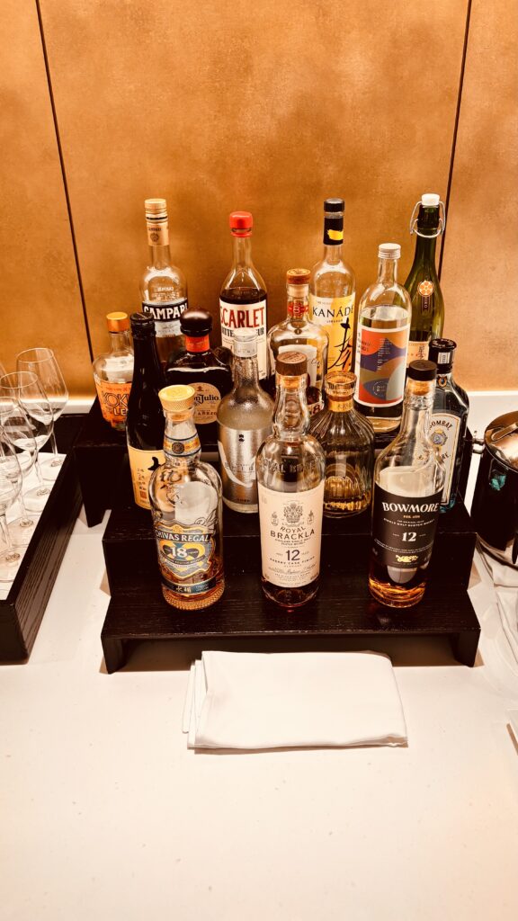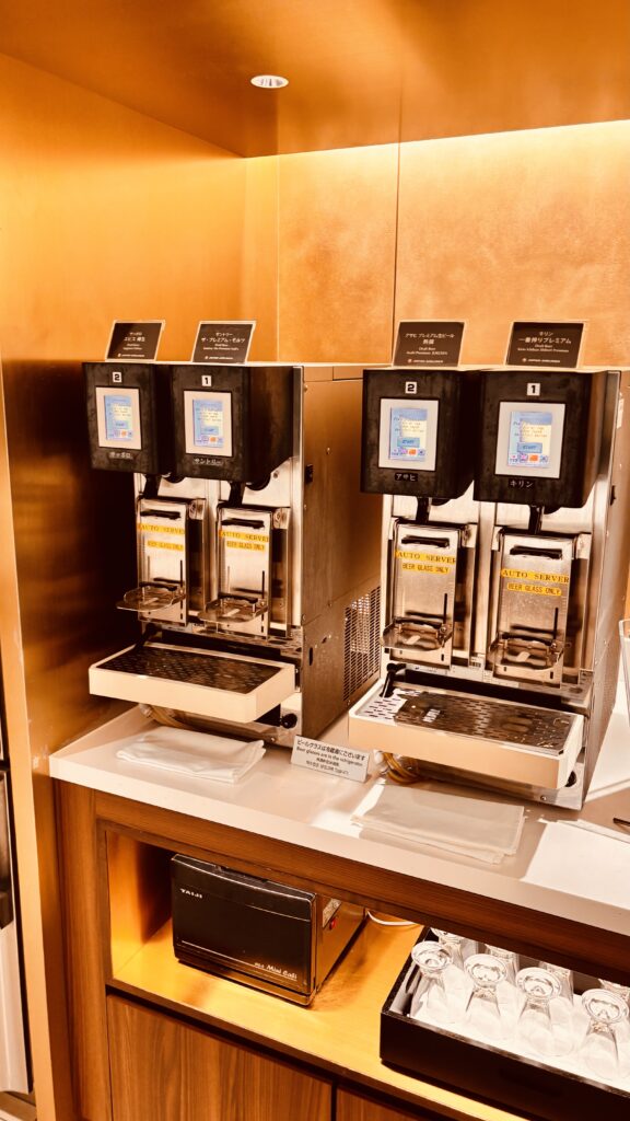 早朝便利用かつ機内でお酒を楽しむ予定だったので、ラウンジではあまりお酒を飲みませんでしたが、かなり多くの種類のお酒があるのでお酒好きにはたまらない品揃えです。