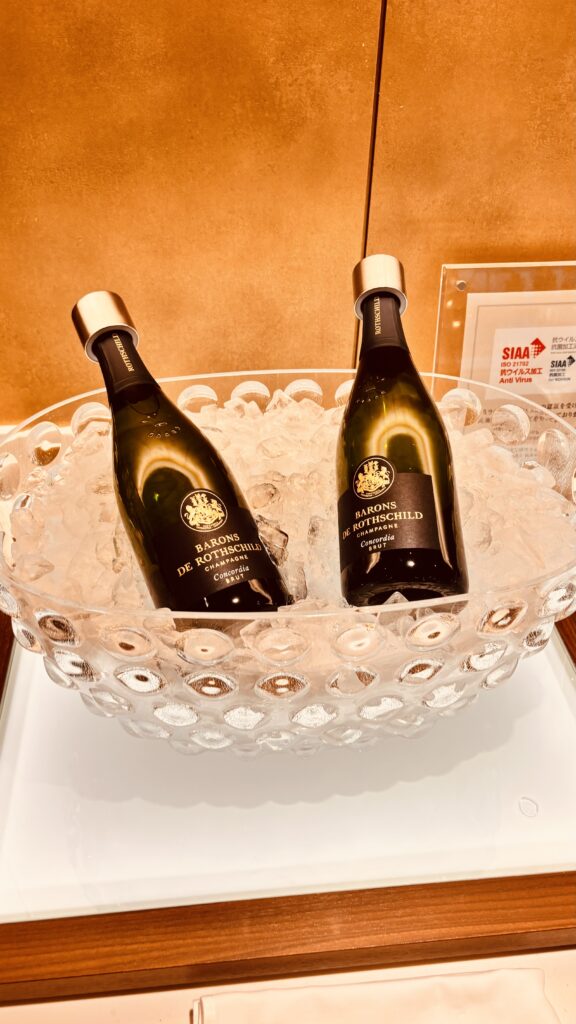 スパークリングワインではなく、本物のシャンパンを置いているのはさすがファーストクラスラウンジです。