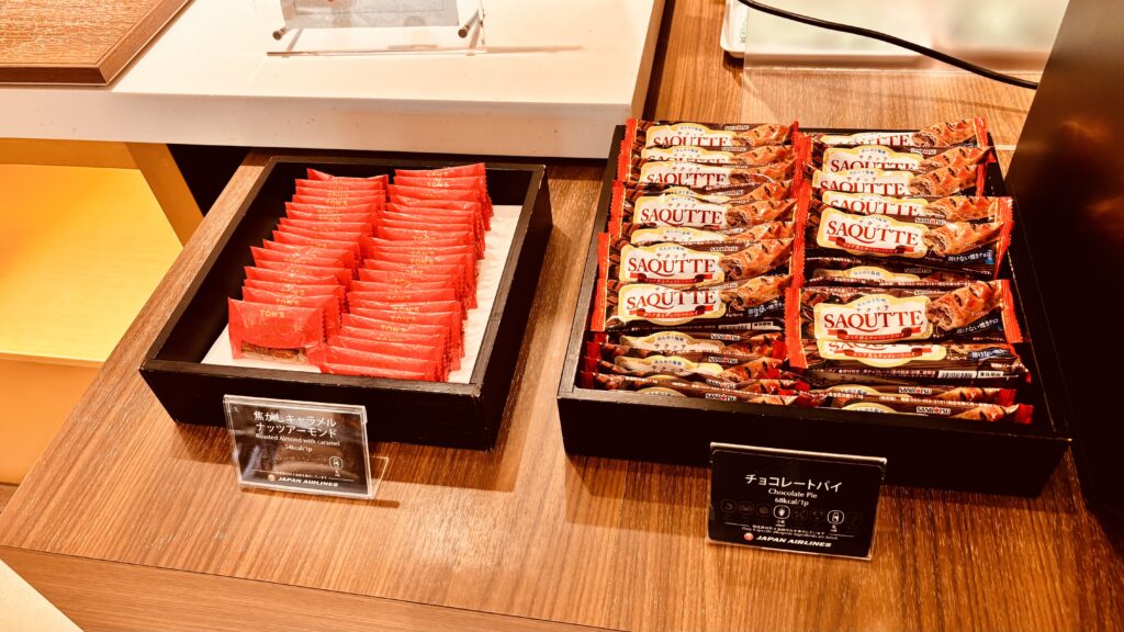 おつまみとしてナッツやチョコ、他にクッキーなども用意されています。