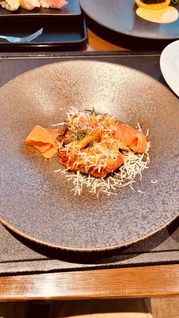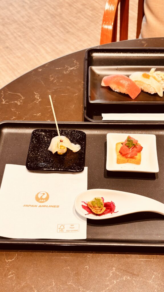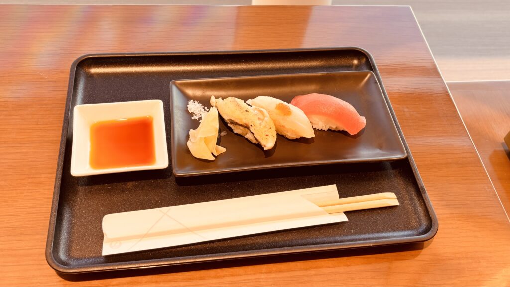 初めて冬の時期のファーストクラスラウンジを利用しましたが、冬はフグがお寿司のネタとして提供されることがあるようです。