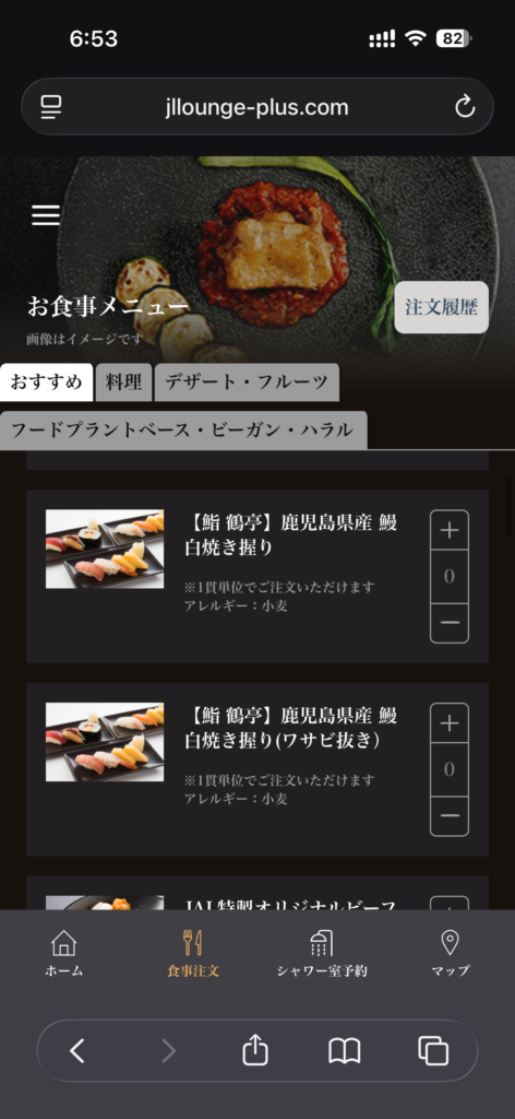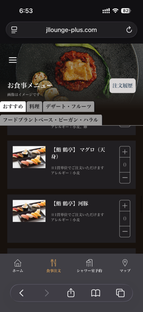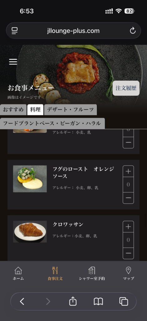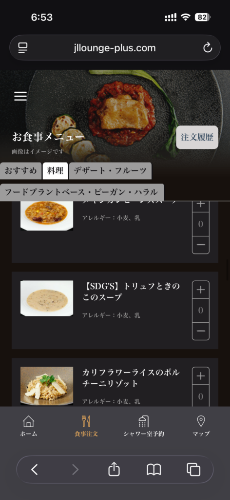 テーブルオーダー形式のものは机のQRコードを読み込んで、下記の専用オーダー画面から注文します。