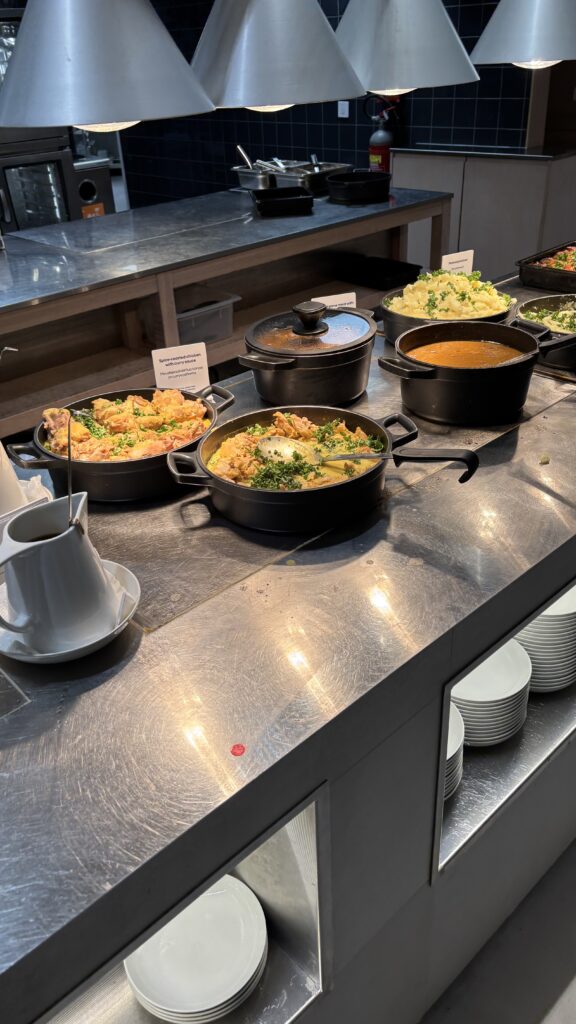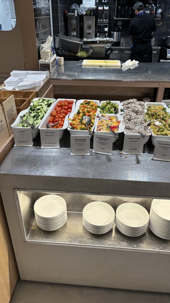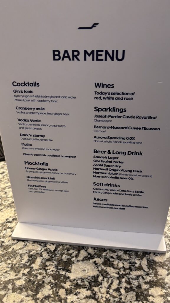 ヘルシンキのフィンエアーラウンジはコールド・ホットミールおよびドリンクも充実しているのでとても使いやすいラウンジでした。