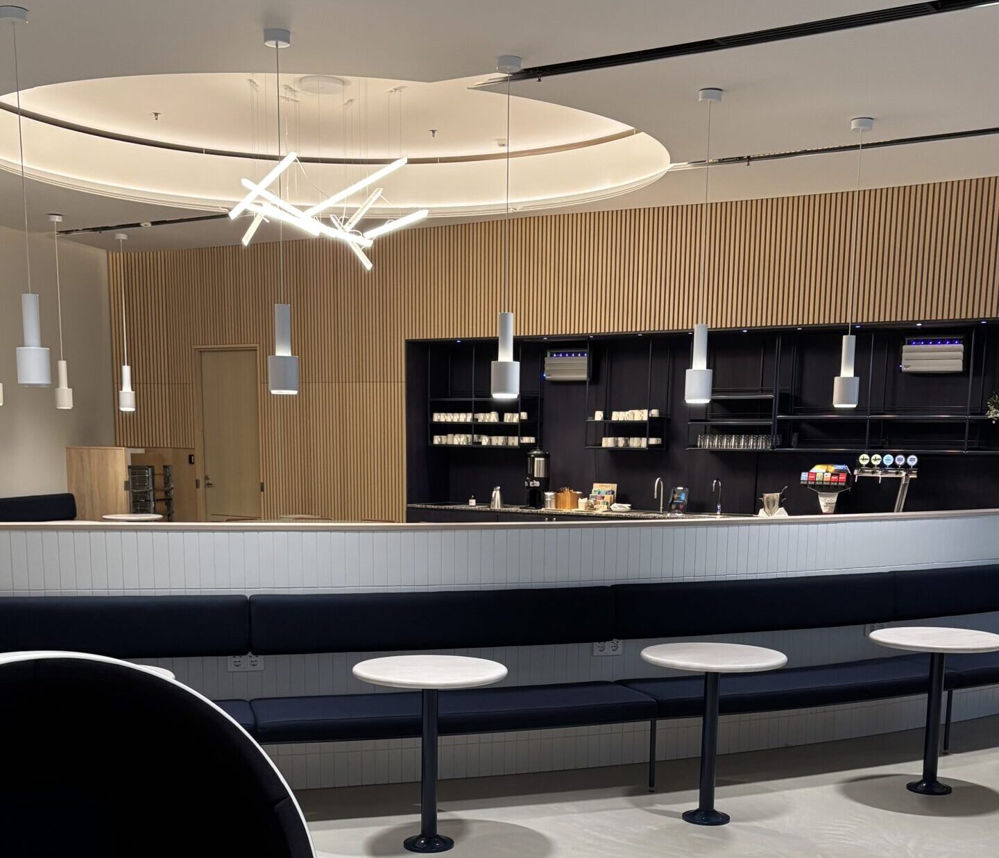 ラウンジの中央エリアにはバーが用意されておりこちらも無料で楽しむことができます。