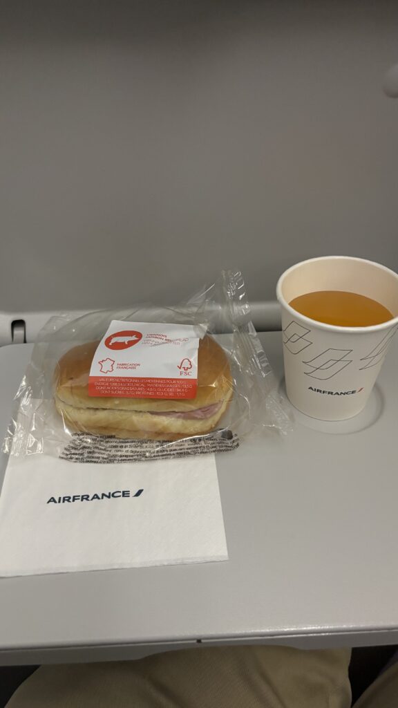 離陸後30分程度で機内サービスとしてドリンクと軽食が提供されます。